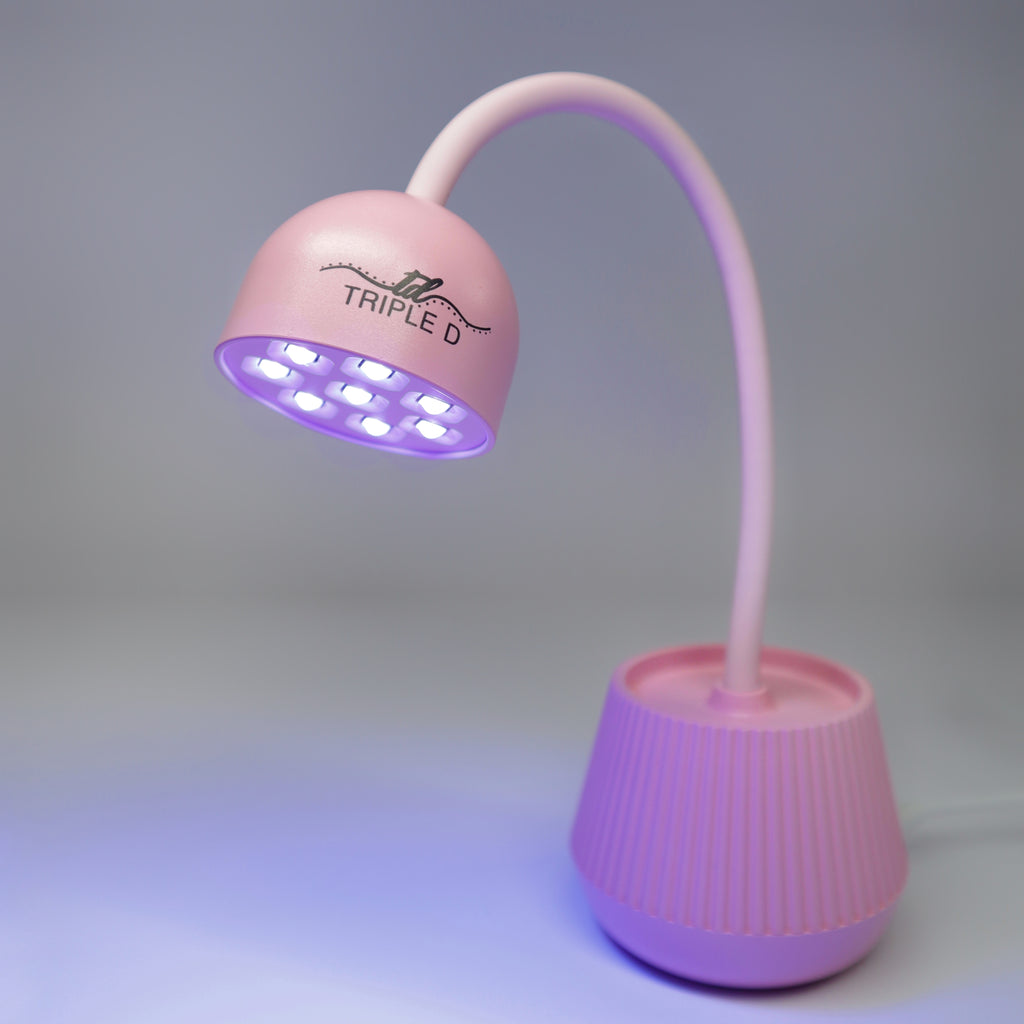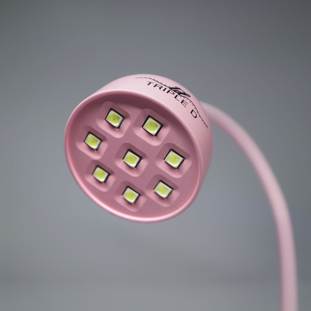 The Gooseneck curing lamp makes it really easy to hold onto your dual forms or gelly tips and flash cure the gel before moving onto the next nail.