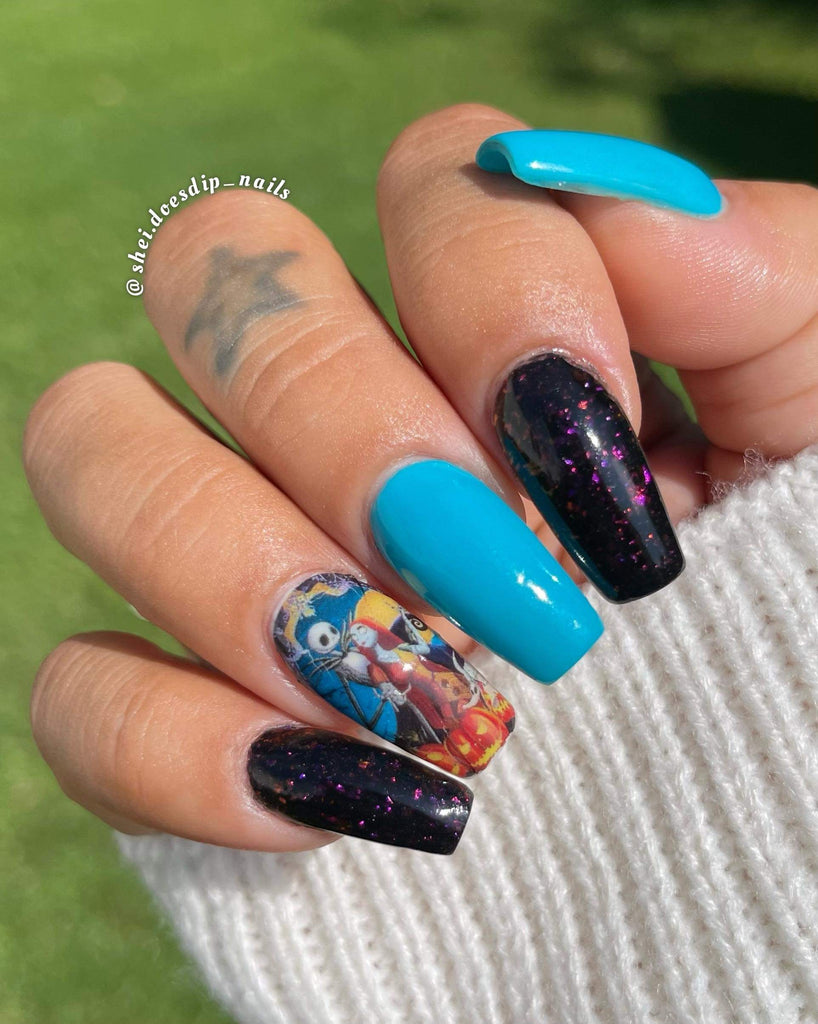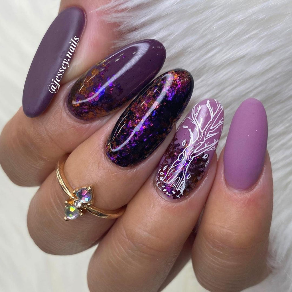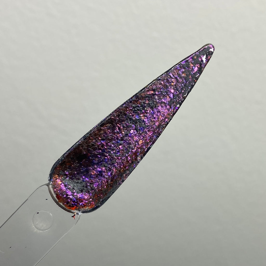 Berry Flakes features a dark base with purple and blue flakes.