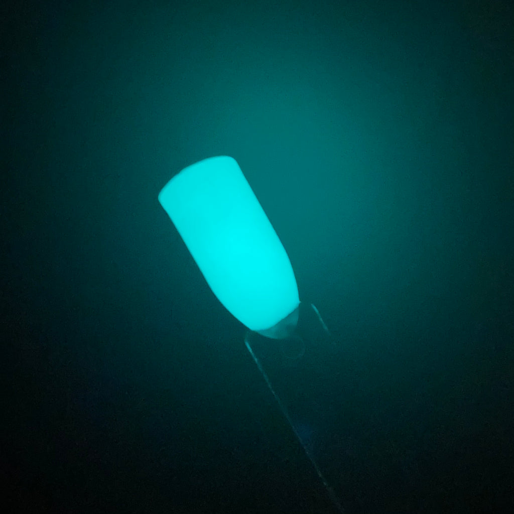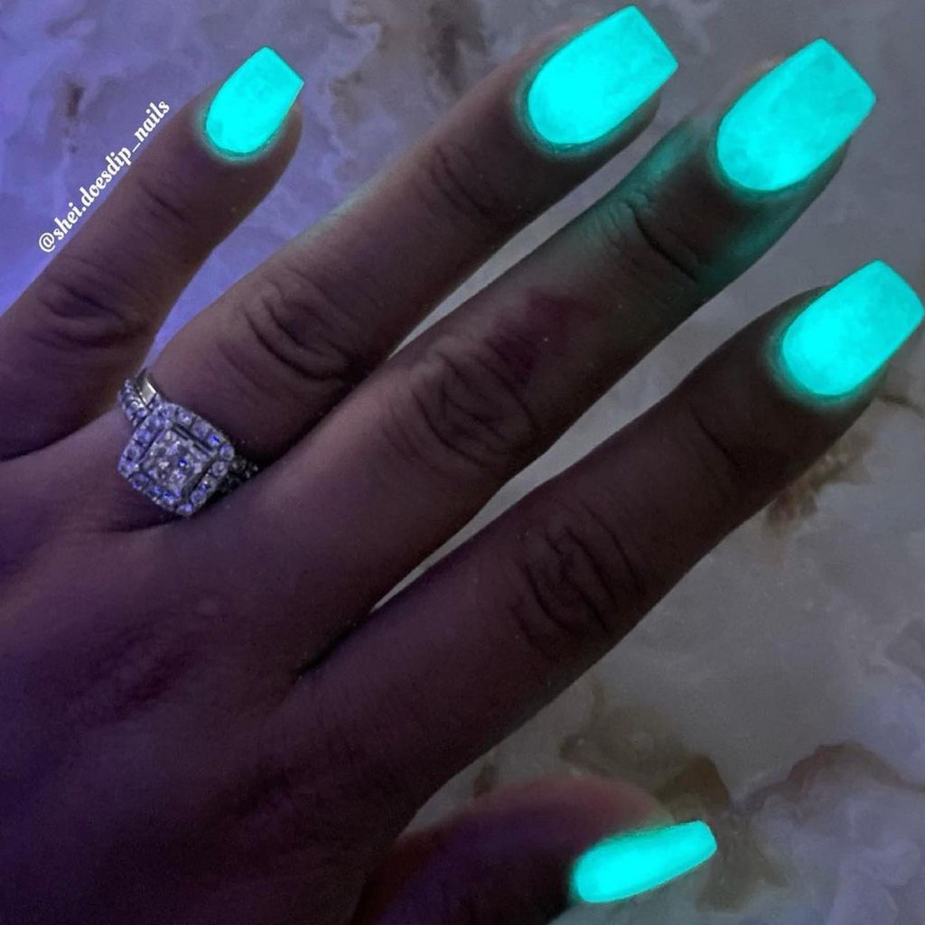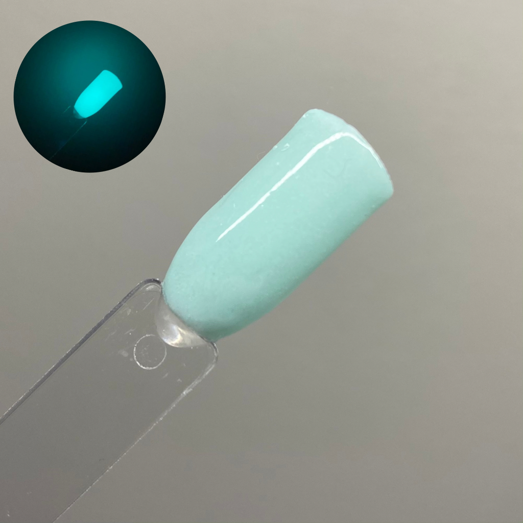 Charge It! is a glow powder that changes from a soft minty green to a glowing aqua blue.