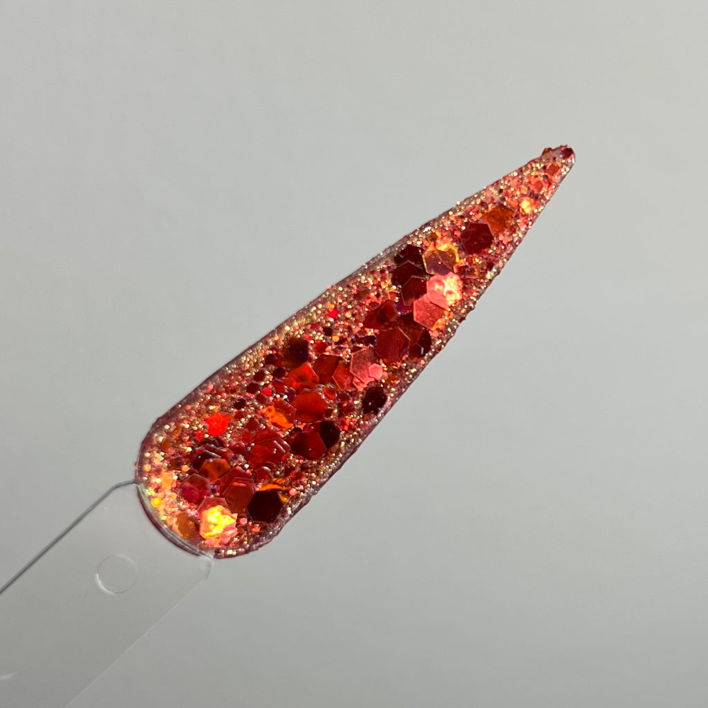 Fall-ing For You is a chunky glitter blend with shifting orange/red glitter chunks.