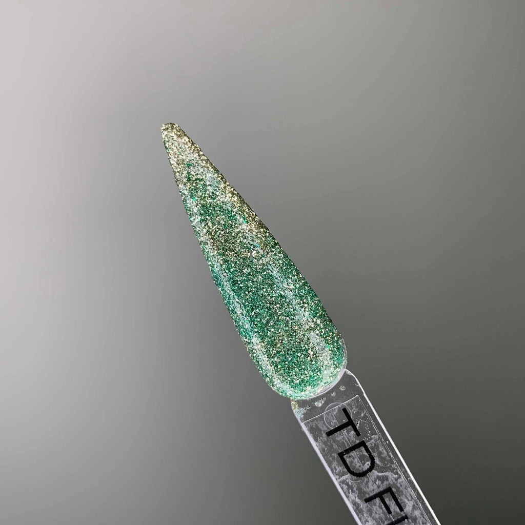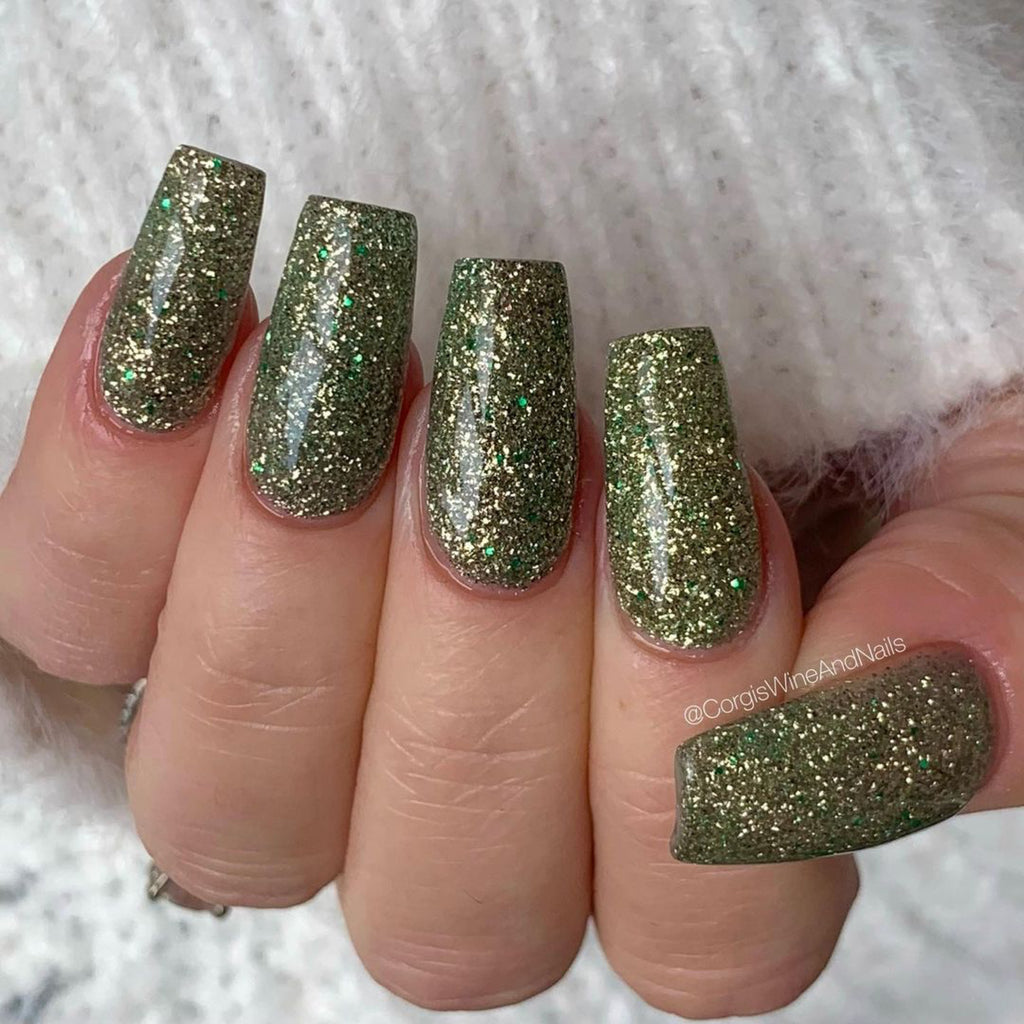 Fly Away is a gold and green glitter mix dip powder.