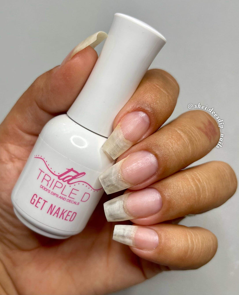 Get Naked is used to remove dip powder, gel polish, lacquer and soft gel from the nails.