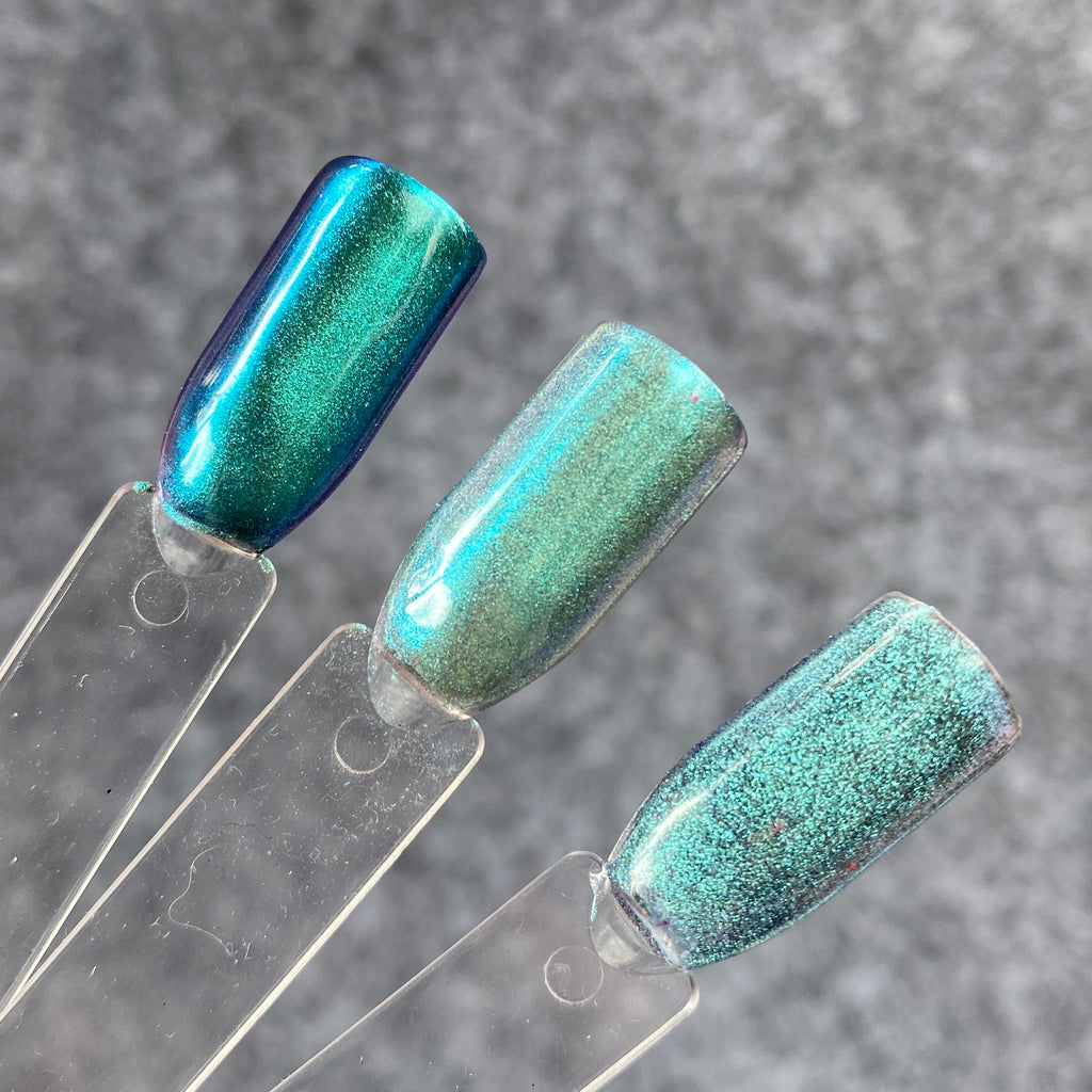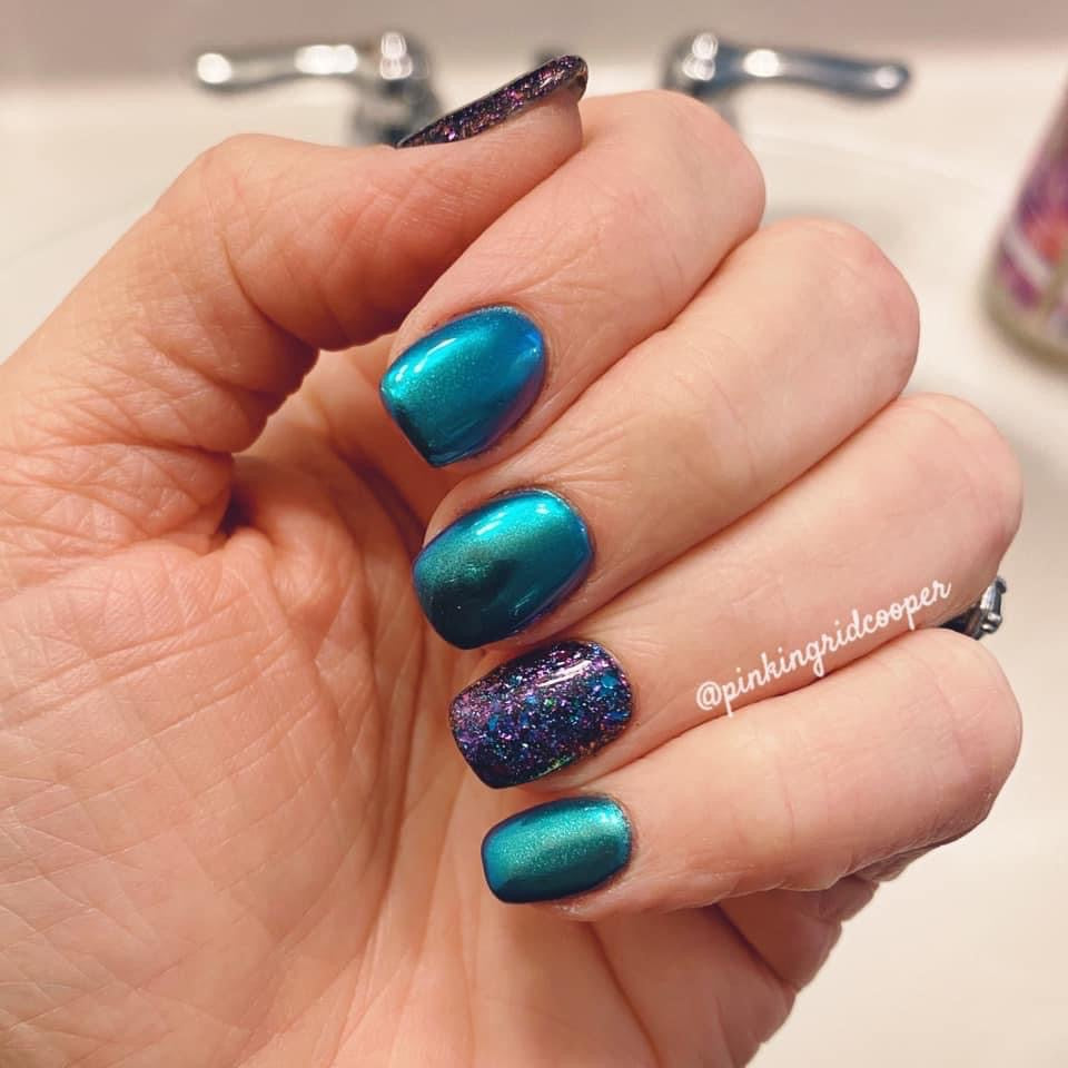 Jewel of the Ocean is a 2-in-1 dip powder that can be chromed or used as a dip powder. It is a gorgeous aqua/teal.