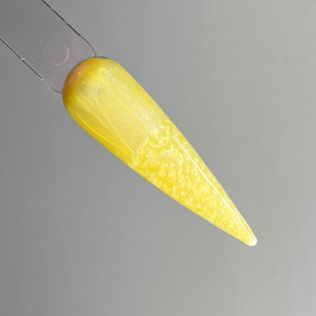 This is a pearly yellow gel polish in our special delicate formula. They can be applied as a pearly sheen or use a cuticle stick and draw figure 8’s to achieve a marble effect.
