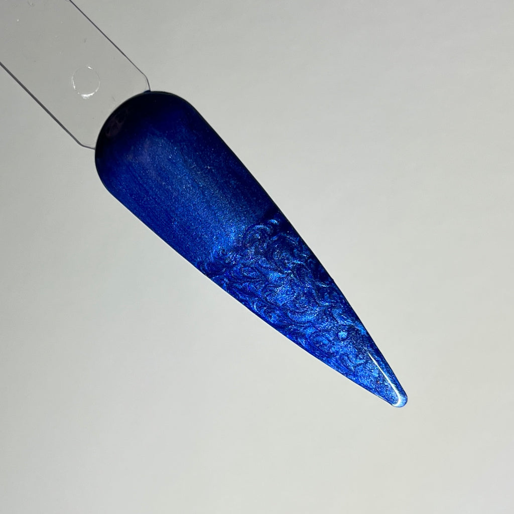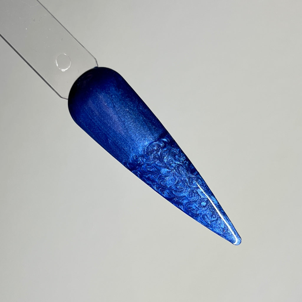 This is a pearly blue gel polish in our special delicate formula. They can be applied as a pearly sheen or use a cuticle stick and draw figure 8’s to achieve a marble effect.