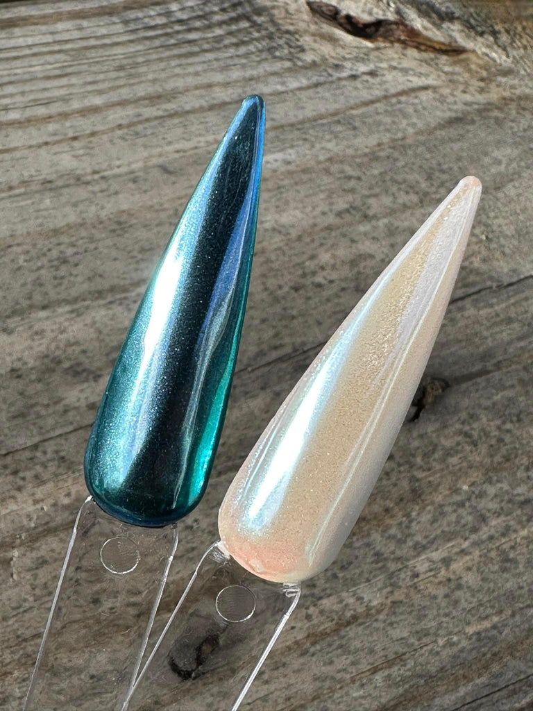 It’s a beautiful pearly white chrome, easy to use and is amazing over other colors! See description photo for example.