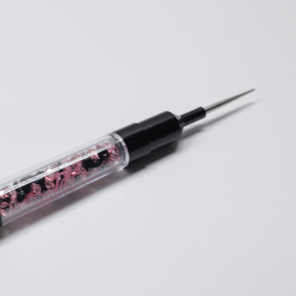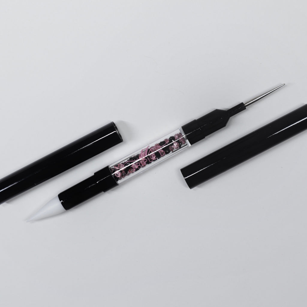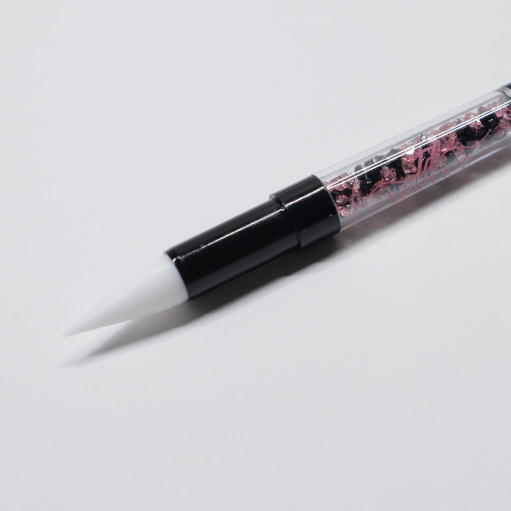 Use the metal end for cleaning up your cuticle line after dip powder, and the silicone end for cleaning up gel and nail Polish.