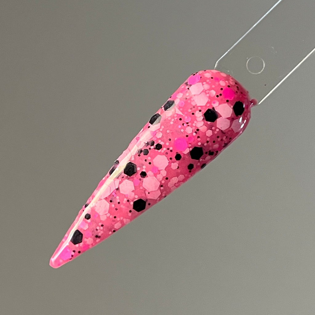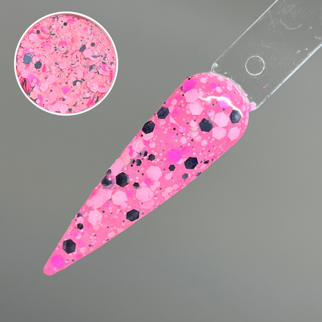 Steam Punk is a fun glitter mixture with pinks and black chunky glitters.