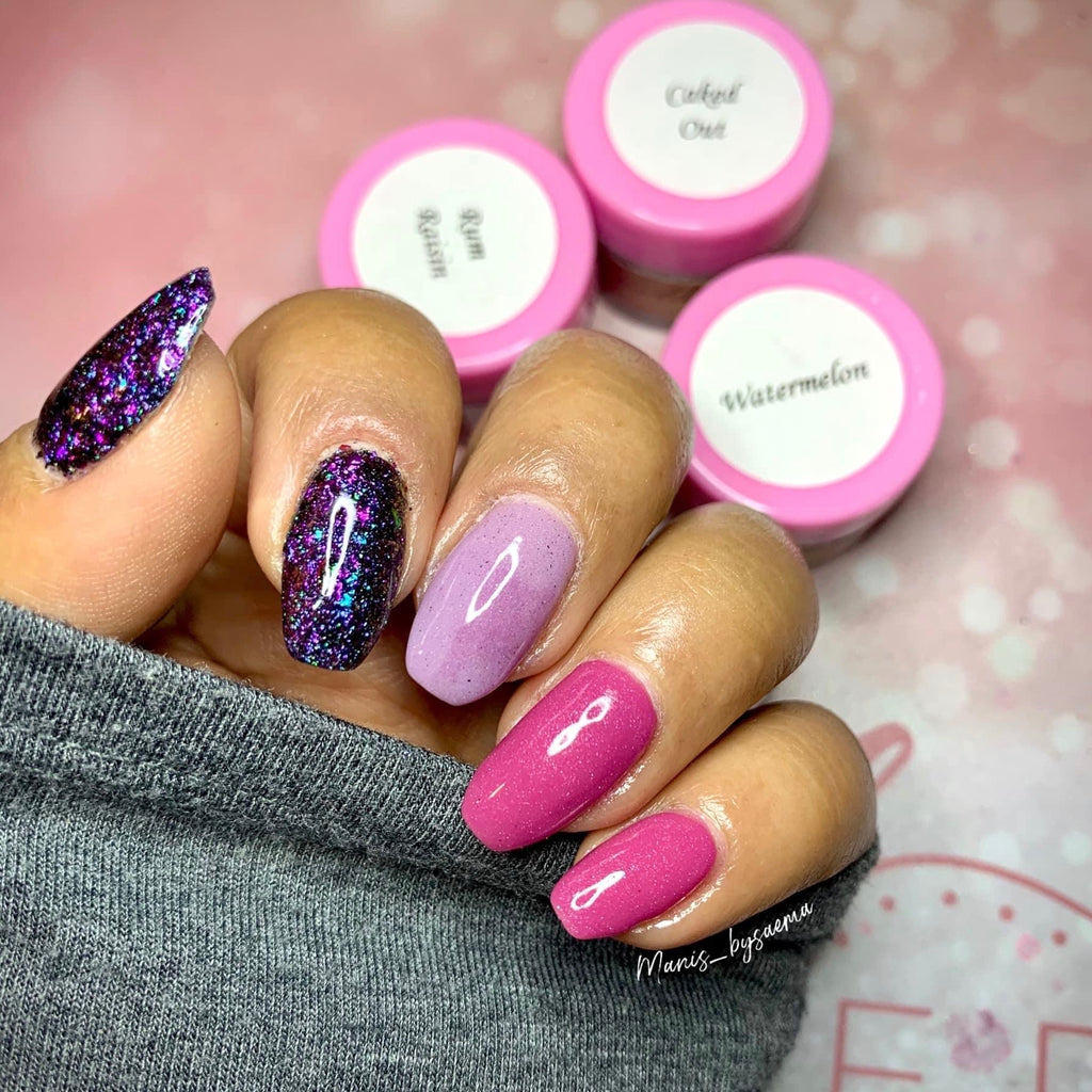 Watermelon is a pinky mauve solid dip powder. Color may vary depending on skin tone and lighting.